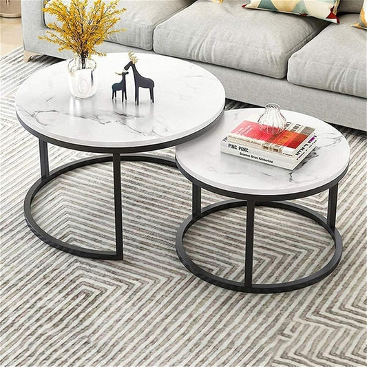 Elegant Round End Table – Faux Marble Texture with Sturdy Metal Frame