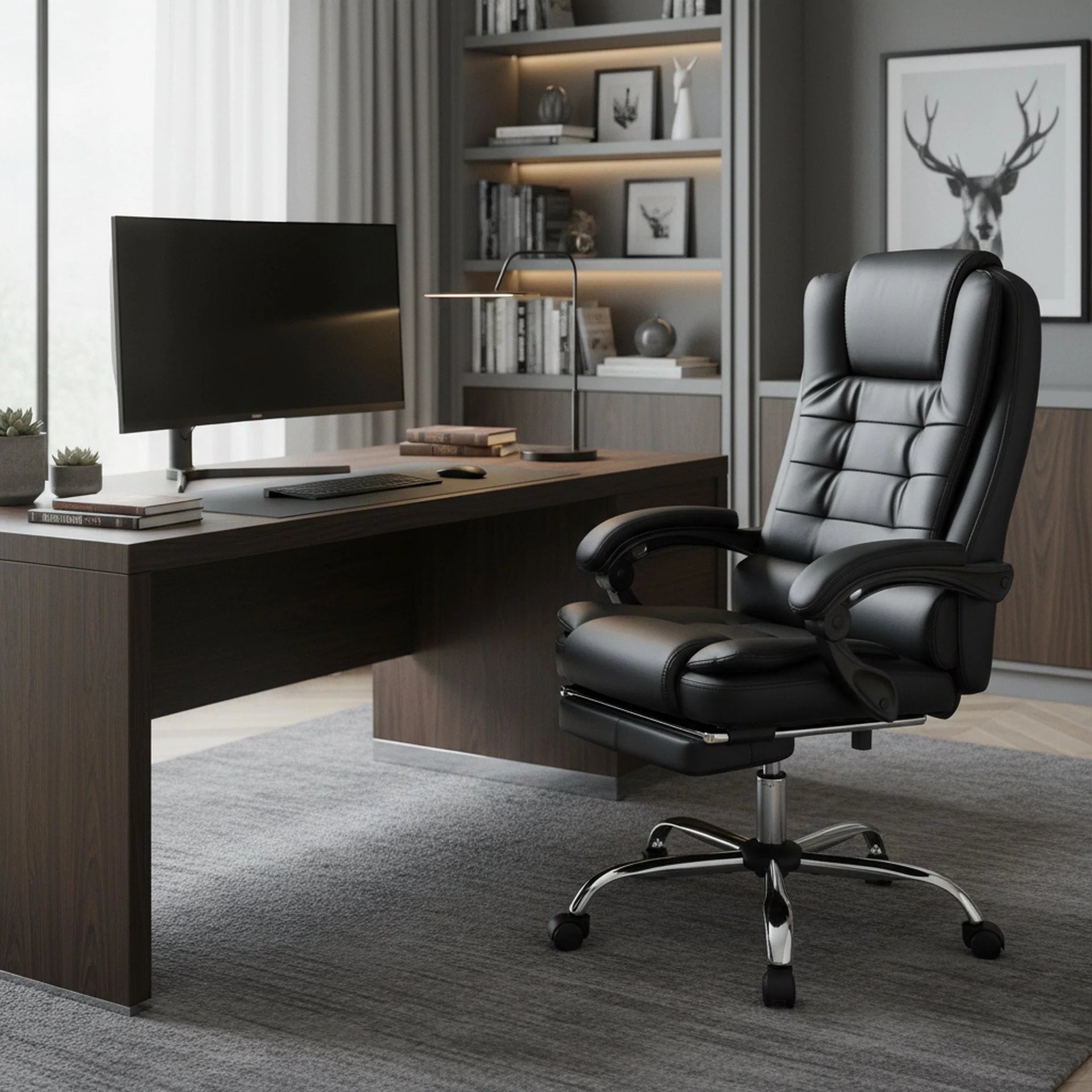 Reclining Leather Office Chair – Executive High Back with Foot Rest & Lumbar Support